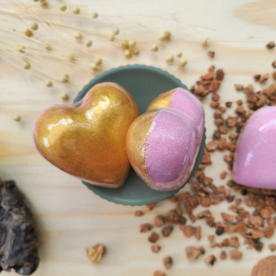 Bombe de bain Cœur Rose/Doré 120g - Fraise